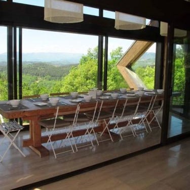 Hébergement et repas : Domaine du Taillé (regardez les photos en discussion), au cœur d’un parc privé de 100 hectares en Ardèche méridionale. Ce lieu insolite nous propose la cuisine savoureuse faite de produits biologiques de saison. Notre villa offre une vue imprenable sur la nature et l’horizon lointain, grâce à ses larges baies vitrées surplombant le parc.